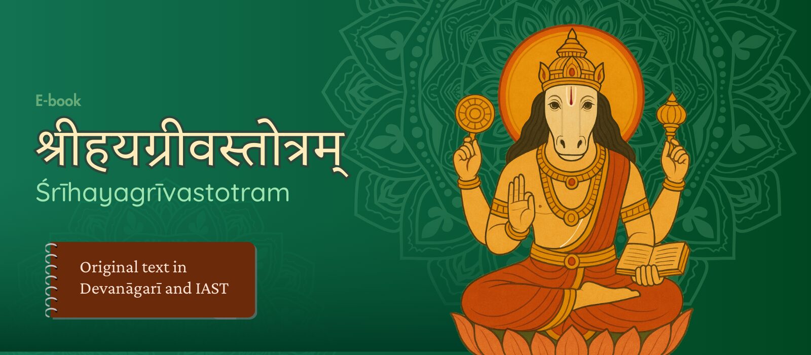 Sri Hayagriva Stotram is a revered composition by Sri Vedanta Deshika, offered in praise of Bhagavan Hayagriva, the embodiment of knowledge and wisdom. Comprising 33 shloka-s, this E-book presents each verse with bold lettered in Sanskrit and IAST. Sri Vedanta Deshika himself is said to have attained extraordinary scholarship and poetic brilliance by the grace of Bhagavan Hayagriva.